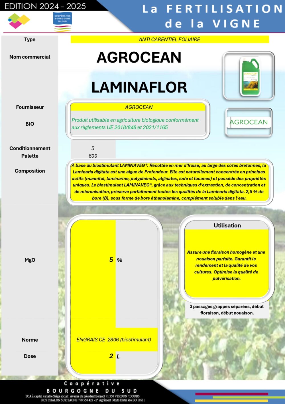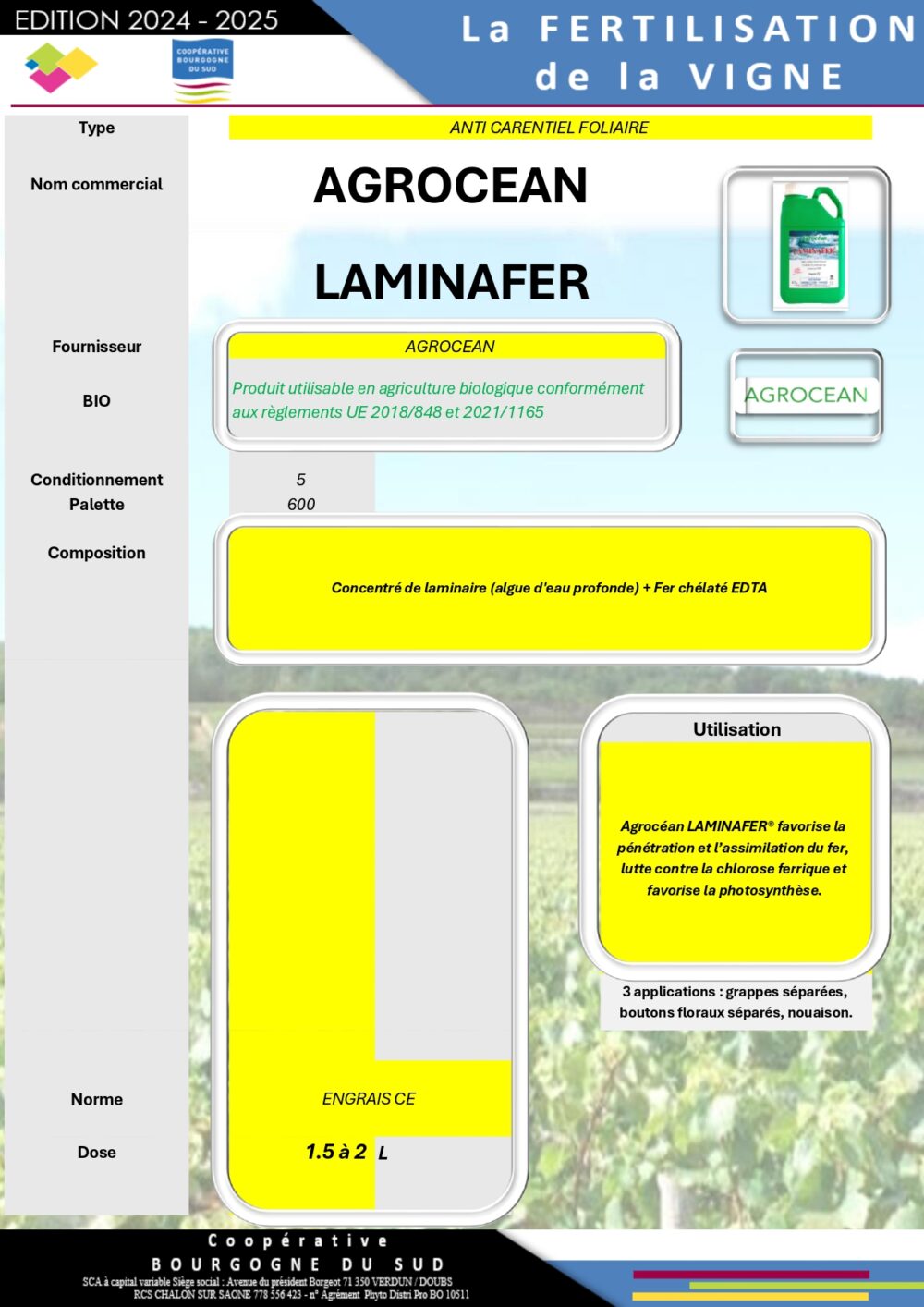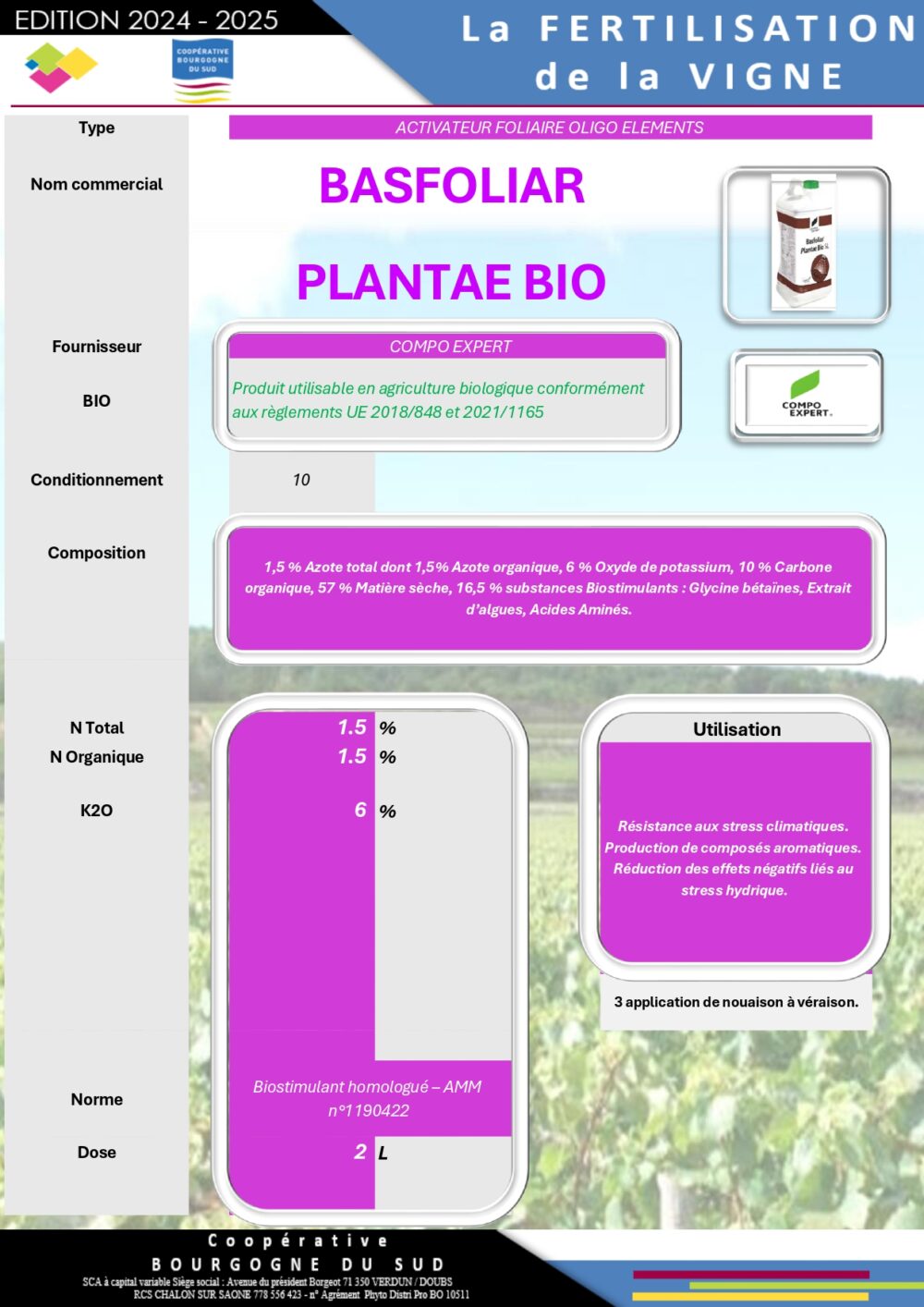Découvrez notre gamme de fertilisants spécialement conçue pour le vignoble du Mâconnais, garantissant des vignes au meilleur de leur forme permettant d’obtenir des raisins de haute qualité) :