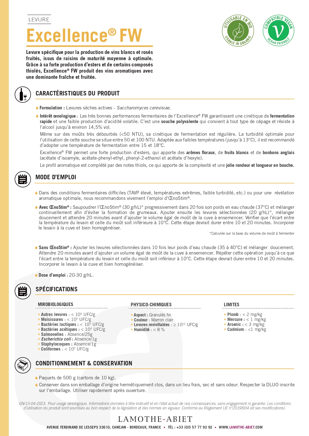 Excellence® FINISHERConsulter le PDF de présentationType de vin : BLANC, ROUGE, ROSE