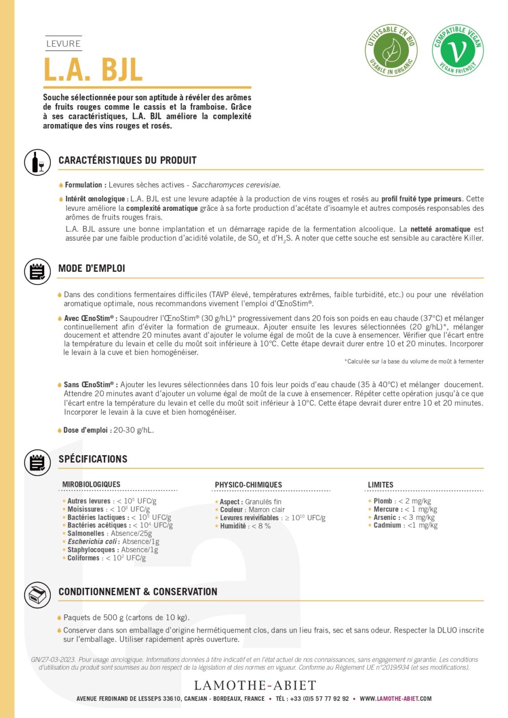 L.A. BJLConsulter le PDF de présentationType de vin : BLANC, ROUGE, ROSE