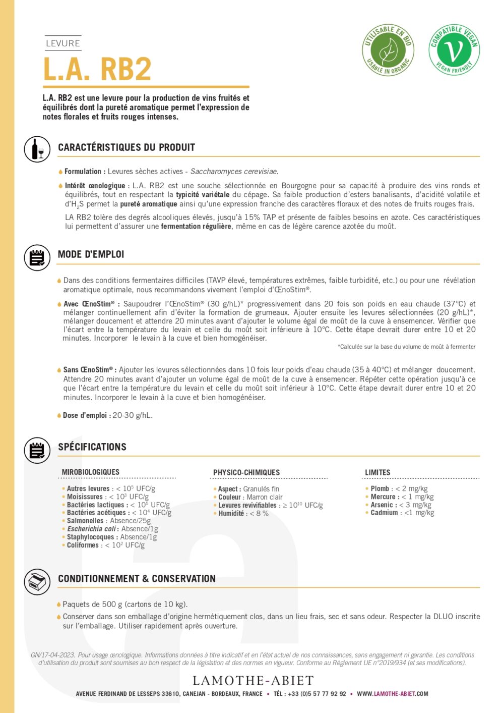 L.A. RB2Consulter le PDF de présentationType de vin : VIN ROUGE